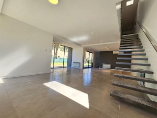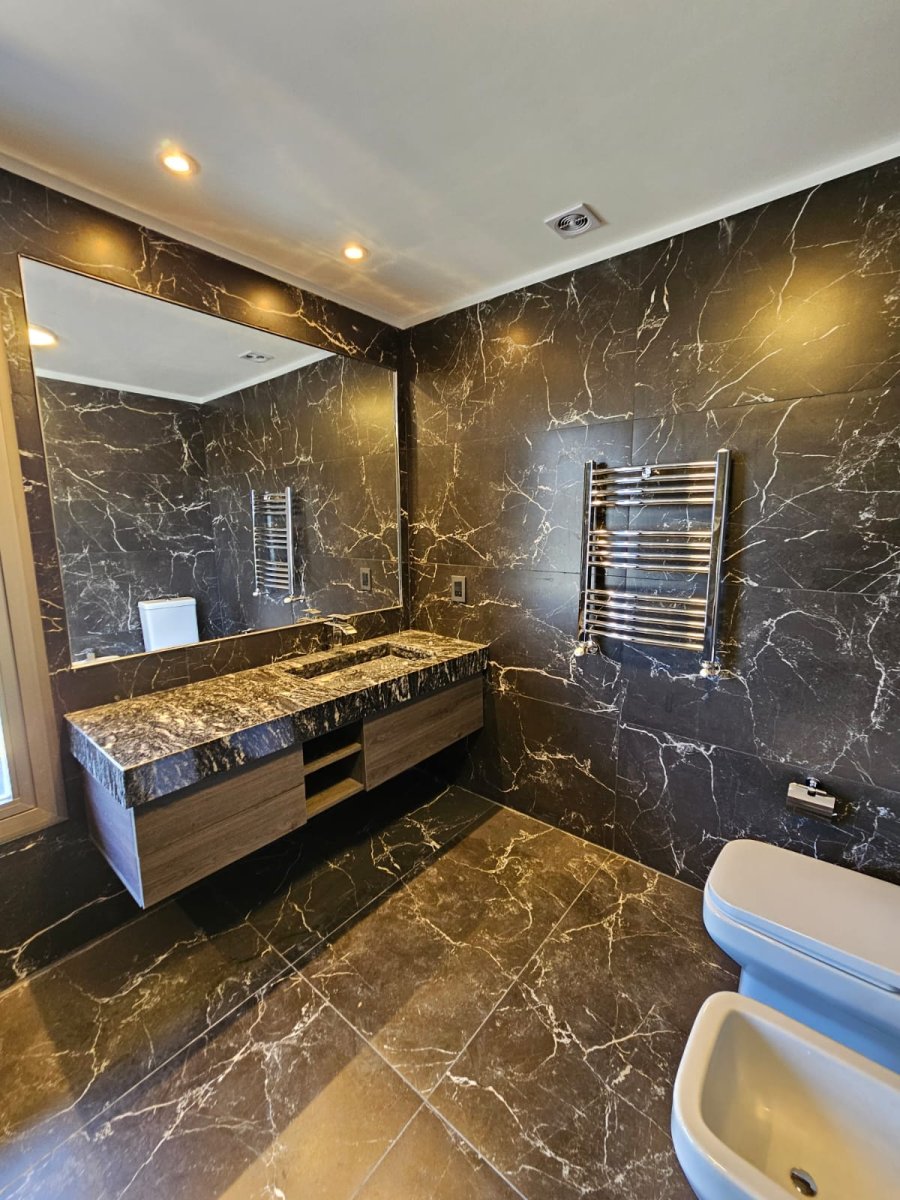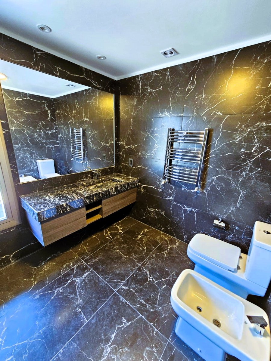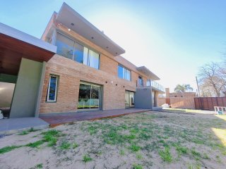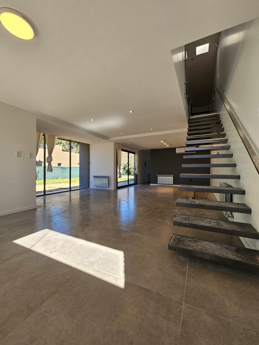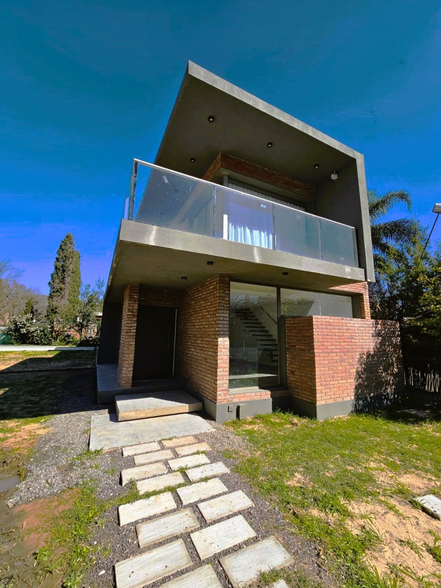 Propiedad construida en 2024, estilo minimalista de ladrillos vistos. Desarrollada en dos plantas, con vistas panorámicas al jardín. UBICADA EN UN EXCELENTE BARRIO, sobre calle de ripio a 1 cuadra y media del pavimento a 2 cuadras de ruta 9, a una cuadra del centro para adultos SENTIDOS. Cercana a 2 arterias principales de acceso a centro comercial de Funes. PB: Ingreso por gran puerta blindad pivotante. Amplio LIVING COMEDOR con hogar, COCINA independiente con península desayunadora (anafe y horno empotrado, mueble bajo mesada y alacena, mármol negro boreal) instalación para lavavajilla. LAVADERO independiente y espacio de guardado. BAÑO completo con antebaño. PA: se accede por escalera mensulada flotante a un amplio pasillo distribuidor con claraboyas que le otorgan luminosidad natural. TRES DORMITORIOS amplios con espacio para escritorio, el dormitorio principal cuenta con vestidor. GRAN BAÑO completo con ducha y mampara. QUINCHO abierto con parrillero y deposito. Ingreso vehicular por porton automatizado. Otros: Paredes de 30cm con cámara de aire y aislante térmico acústico. Aberturas de aluminio anodizado línea Módena color champagne. Vidrios laminados 5+5. Bomba presurizadora Pisos de porcelanato en planta baja y flotante símil madera en planta alta, todo de primera calidad. Sanitarios Ferrum, Grifería Roca. Mesadas de mármol negro Boreal. Bacha Johnson Luxor Si85. Puertas interiores marca Oblak Testura. Calefacción por radiadores. Caldera dual con conexión Wi-Fi. (domotizado) Alarma y cámaras de seguridad (domotizado) Instalación para generador eléctrico a gas, con llave conmutadora. Paredes interiores de yeso. Todas las luminarias son led y las exteriores están domotizadas. Servicios: Gas natural Internet por fibra óptica.