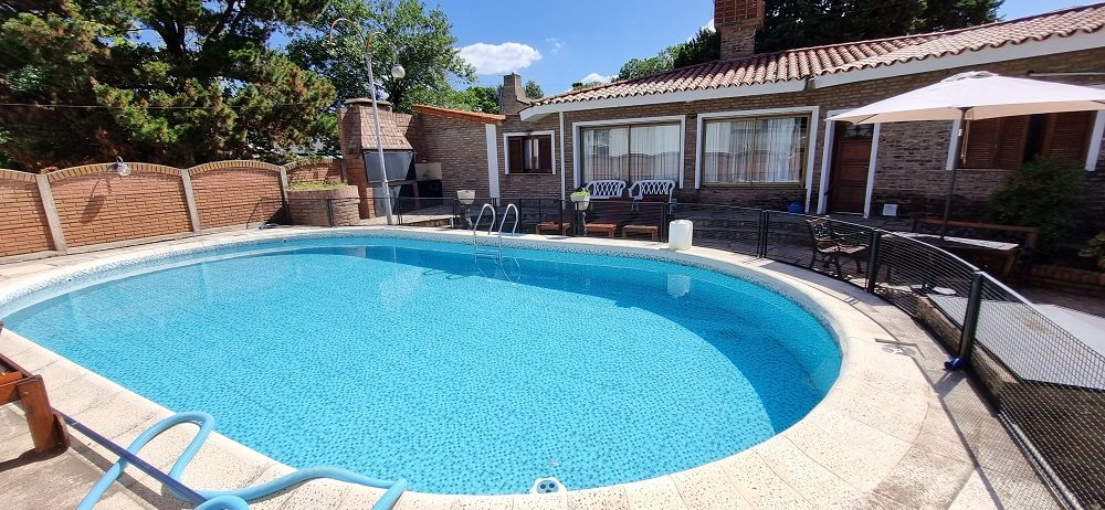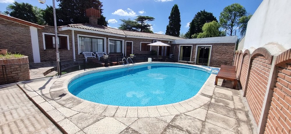 Casa en venta — Pueyrredón 1400, Funes Casa desarrollada totalmente en planta baja sobre un terreno de 930 m², con una superficie cubierta de 253 m². Ubicada en una de las zonas más buscadas de Funes, con orientación norte y excelente entorno residencial. Distribución y características: • Galería/cochera al frente para dos autos. • Ingreso principal a amplio living-comedor. • Cocina tipo kitchenette separada por barra, con salida independiente al jardín. (Muebles bajo mesada y alacenas en madera maciza). • Sala de estar con salida directa al solárium y piscina. • 4 dormitorios. • 2 baños completos. • Gran quincho cerrado con parrillero. • Piscina de gran tamaño, con laja atérmica y cerramiento perimetral. Detalles constructivos: • Techo de loza. • Paredes de 30 cm en ladrillo visto. • Aberturas en madera maciza. • Sólida construcción. • Dos pozos nuevos y bomba sumergible. Servicios: • Agua corriente. • Gas natural. Una propiedad sólida y funcional, ideal para familia, con amplios espacios interiores y exteriores, y excelente ubicación en Funes.