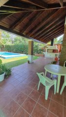 Casa en venta — Los Fogones 2600, Funes (Garita 15 bis) Ubicada en Garita 15, a solo cinco cuadras del transporte público por José Hernández y con rápido acceso a Ruta 9, esta propiedad se encuentra en una zona tranquila, arbolada y con abundante forestación. Desarrollada completamente en planta baja sobre dos lotes que totalizan 581 m², con una superficie cubierta de 47 m² más 66 m² de galería, ofrece una construcción sólida y funcional, ideal para vivienda permanente o casa de descanso. Distribución: • Dormitorio principal con vista al jardín. • Segundo dormitorio o comodín. • Amplia cocina comedor con amoblamientos de algarrobo. • Baño completo con ducha. • Doble ingreso. Exterior: • Galería en “L” con parrillero. • Piscina de material de 7 x 3 m (profundidad máxima 1,90 m). • Jardín con entorno natural y buena privacidad. Servicios: • Gas natural. • Agua de pozo. • Pozo ciego. Superficie total del terreno: 581 m² Actualmente alquilada hasta enero de 2026. Una propiedad sólida, con espacios amplios y entorno verde, ideal para quienes buscan tranquilidad y fácil acceso a los servicios y comercios de Funes.