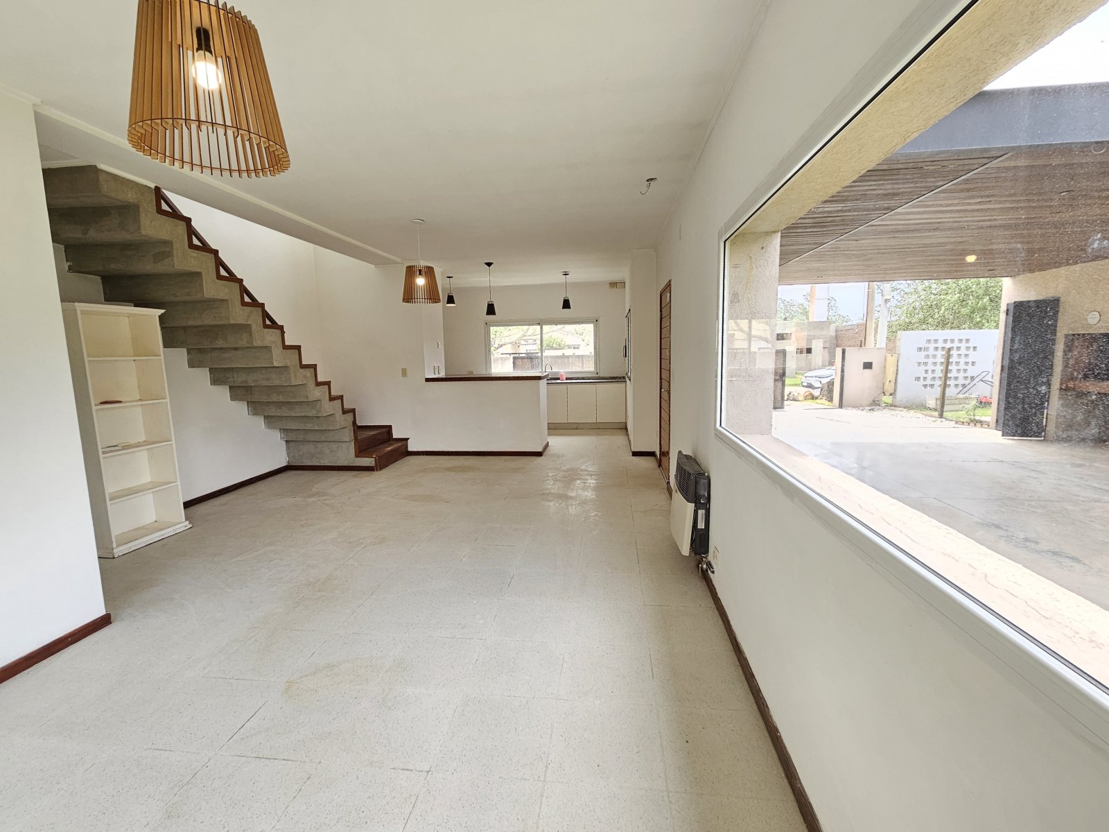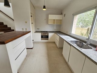 Casa en alquiler — Tierra de Sueños 3, Roldán (Sector A) Ubicada en el Sector A de Tierra de Sueños 3, esta casa se desarrolla en dos plantas sobre un terreno de 360 m², con una superficie cubierta de 100 m². La propiedad cuenta con los servicios de luz, agua corriente y gas natural. Frente cerrado con retiro de jardín, portón corredizo manual y galería-cochera para dos autos con parrillero y pequeño depósito. El ingreso principal conduce a un espacio integrado de living comedor y cocina separada por barra, con espacio previsto para lavavajillas y lavarropas. En planta baja también se encuentra un toilette. En planta alta, la vivienda dispone de dos dormitorios, baño principal completo y terraza balcón. Orientación: Oeste Superficie del terreno: 360 m² Superficie cubierta: 100 m² Servicios: Luz — Agua corriente — Gas natural Una propiedad moderna, funcional y bien ubicada dentro de Tierra de Sueños 3, ideal para vivienda familiar con cómodos espacios interiores y exteriores.