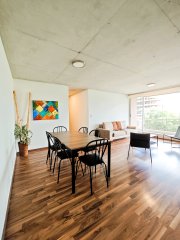 Departamento en alquiler permanente — Tierra Nueva Condo 3 Departamento de 135 m², ubicado en el complejo Tierra Nueva Condo 3, ideal para quienes buscan comodidad, amplitud y servicios de calidad. Se alquila preferentemente amoblado. La unidad cuenta con cocina separada con pasaplatos, espacio de lavadero, y un amplio living comedor con salida a un balcón corrido, que aporta muy buena luminosidad y ventilación. La distribución interior incluye tres dormitorios, el principal en suite, un segundo baño completo con antebaño y un cómodo espacio de escritorio, ideal para home office. El departamento es totalmente eléctrico y dispone de aires acondicionado frío–calor en todos los dormitorios y en el living comedor. Incluye cochera y acceso a los amenities del complejo: Gimnasio Quincho abierto con parrillero Piscina Con actualización cuatrimestral por IPC Una excelente opción para alquiler permanente, en un entorno moderno, seguro y con todos los servicios para una vida confortable.