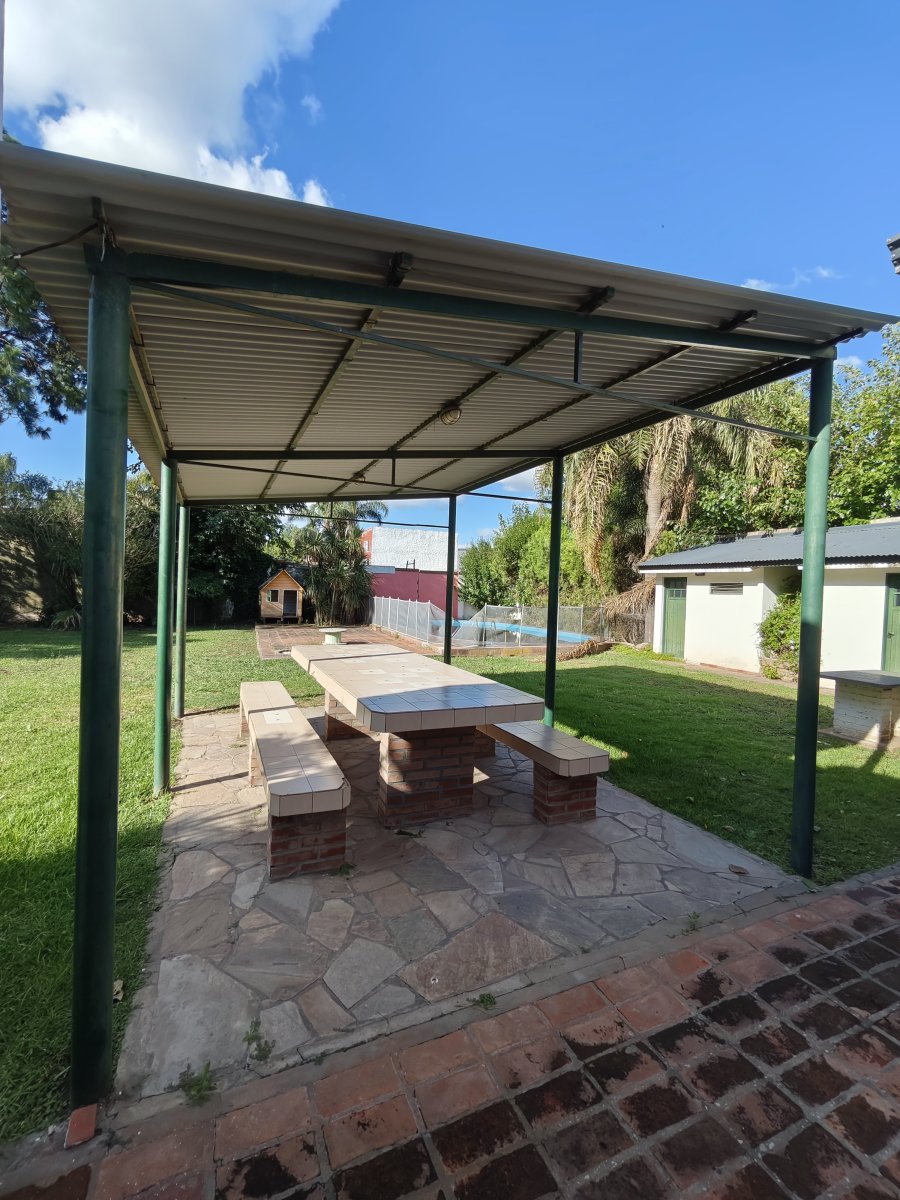 Casa en venta — Funes, Garita 18 (Bogado y Las Heras) Casa desarrollada en una sola planta sobre un terreno de 547,20 m² Superficie cubierta 80 m², semicubierta 23,45 m², y piscina de 45 m². Distribución: • Living comedor. • Cocina independiente. • 2 dormitorios con placares. • 1 baño completo con antebaño. • Galería de chapa con parrillero, mesa y bancos de material. • Baño exterior, lavadero y depósito. • Piscina con sala de máquinas y vestuario. Servicios: • Gas natural. Propiedad funcional, en excelente esquina y con amplios espacios verdes, ideal para uso familiar o desarrollo futuro