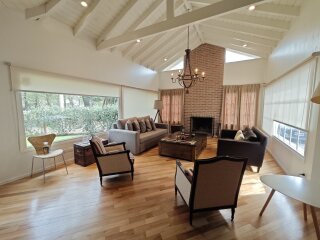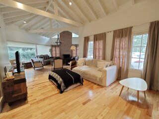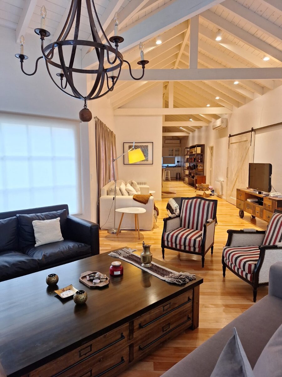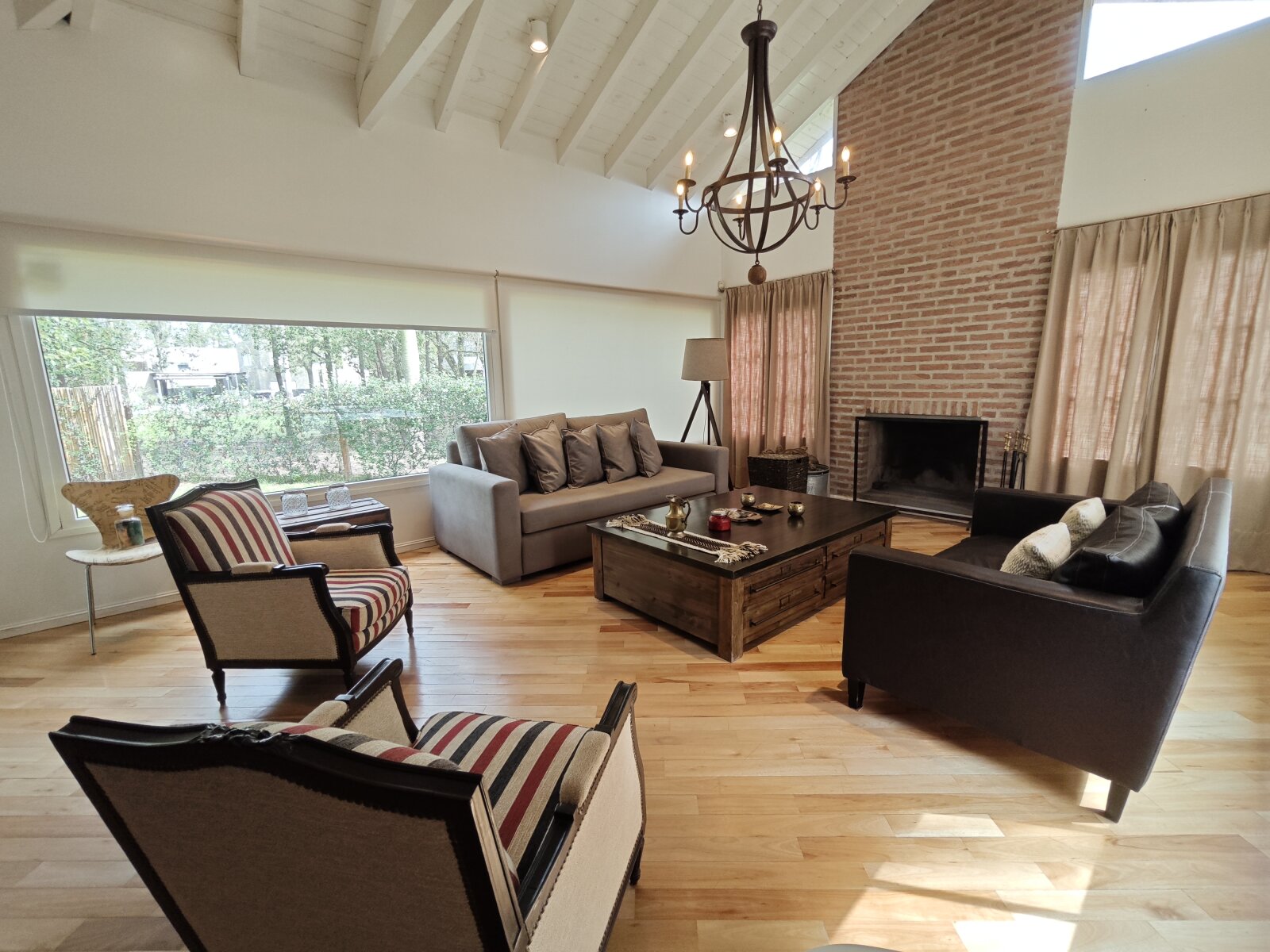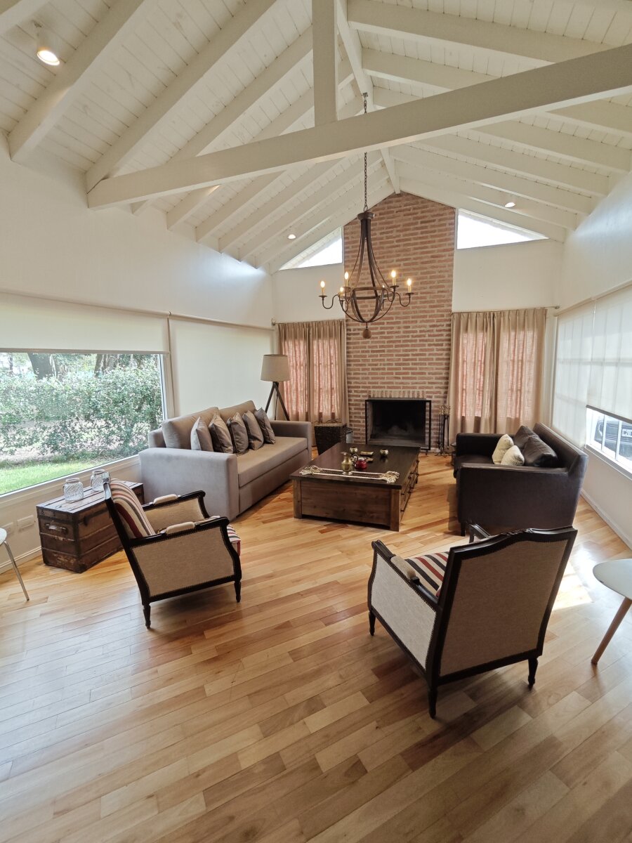 Una propiedad única, donde el diseño, la amplitud y la calidez se combinan en cada detalle. Ubicada en el exclusivo barrio Río de Pájaros, esta casa se ofrece en alquiler permanente totalmente amoblada, con una estética cuidada y de excelente gusto. Desde el ingreso se destaca un imponente living con techos altos de madera a la vista, que aporta una sensación de amplitud y carácter. El hogar a leña, junto a las grandes aberturas, genera un ambiente cálido, luminoso y con fuerte conexión con el exterior. El área social se desarrolla en un amplio living comedor, ideal para disfrutar tanto en el día a día como en reuniones, acompañado de una cocina funcional y bien integrada. La propiedad dispone de tres dormitorios, uno de ellos en suite, y tres baños, logrando una distribución cómoda y equilibrada. Como valor diferencial, el quincho se integra de manera continua a la casa, funcionando como una extensión natural del área social, perfecto para encuentros y momentos de disfrute durante todo el año. En el exterior, se despliega un gran parque con pileta, generando un entorno verde, privado y relajado. Cada ambiente refleja calidad, armonía y atención en los detalles, ofreciendo una experiencia de vivienda superior. Una propuesta ideal para quienes buscan alquilar una casa distinta, lista para habitar, con estilo y confort en un entorno privilegiado.